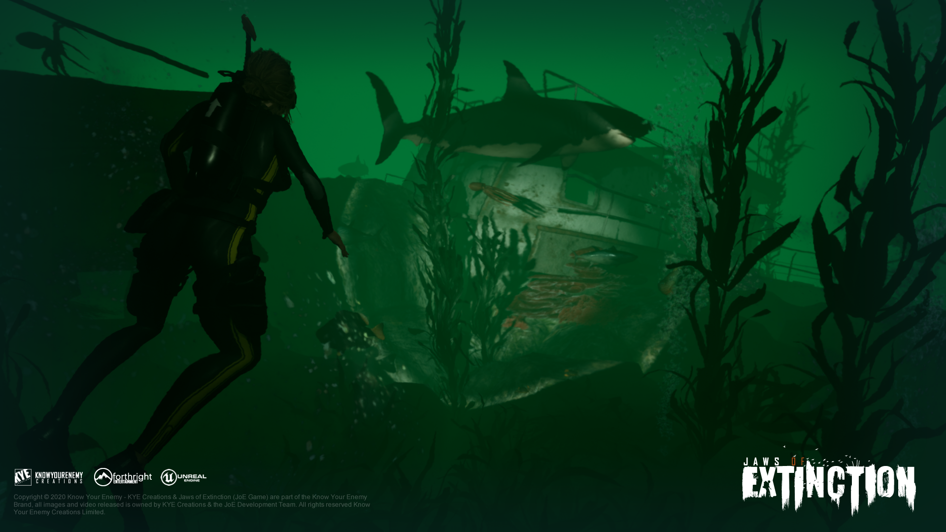 Developed by Know Your enemy Creations Limited. “KYE”, “KYE CREATIONS”, “Know Your Enemy”, “Jaws of Extinction” (UK00003874004) and the KYE Creations “KYE” logo are all trademarks and/or registered trademarks of Know Your Enemy Creations. All rights reserved. Published by Forthright Entertainment LLC. Jaws of Extinction © 2016 - 2025 Ryan Thirlwall, KYE Creations. All Rights Reserved.